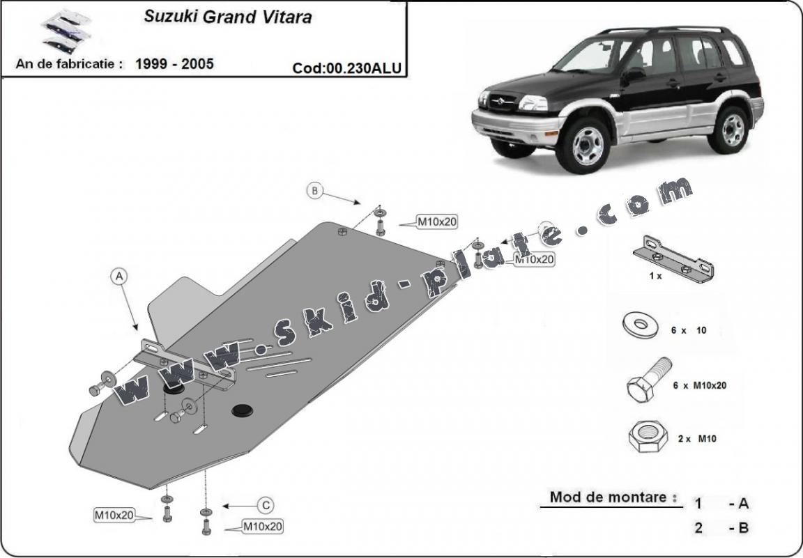 Aluminum gearbox skid plate for Suzuki Grand Vitara (1999-2005)