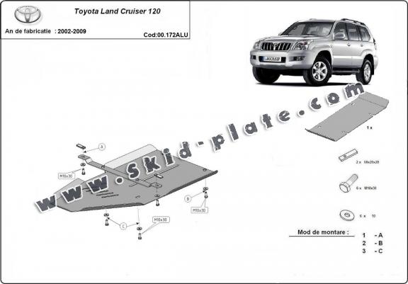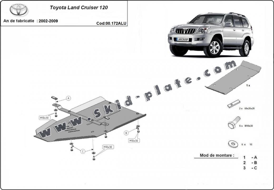 Aluminum gearbox skid plate for Toyota Land Cruiser J120 (2002-2009)