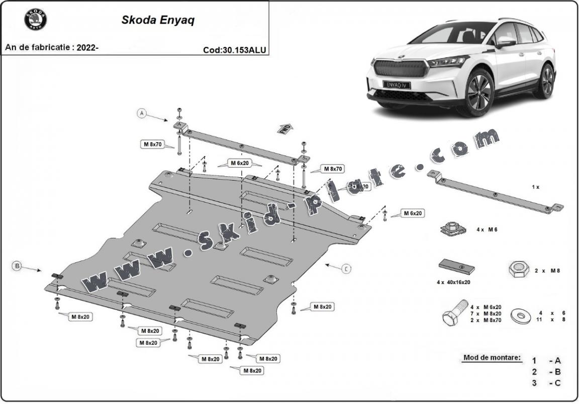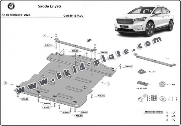 Aluminum skid plate for the protection of the engine and the gearbox for Skoda Enyaq (2022-2025)