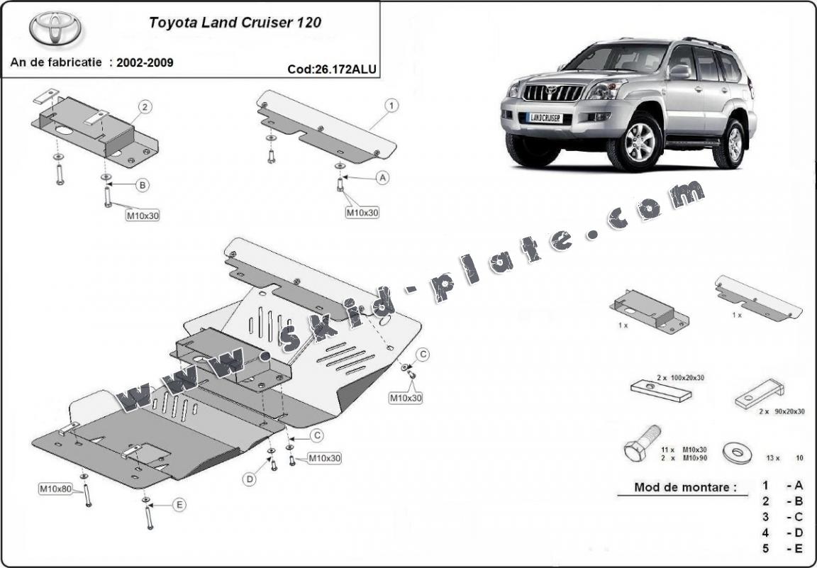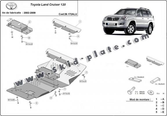 Aluminum skid plate for Toyota Land Cruiser J120 (2002-2009)