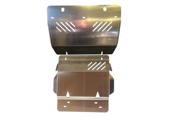 Skid plate for the protection of the: engine, radiator, front bumper The skid plate is new and fits perfectly for all versions of Toyota Land Cruiser J120 manufactured between 2002 and 2009. Made out of 4 mm thick Aluminium plate. The shields are made of aluminum, but the mounting brackets are made of steel. Screws, nuts, clips, all fastening accessories are included. All skid plates are powder coated to prevent corrosion. The exterior of the skid plate is provided with Aluminium reinforcements, which increases the resistance to impact. |