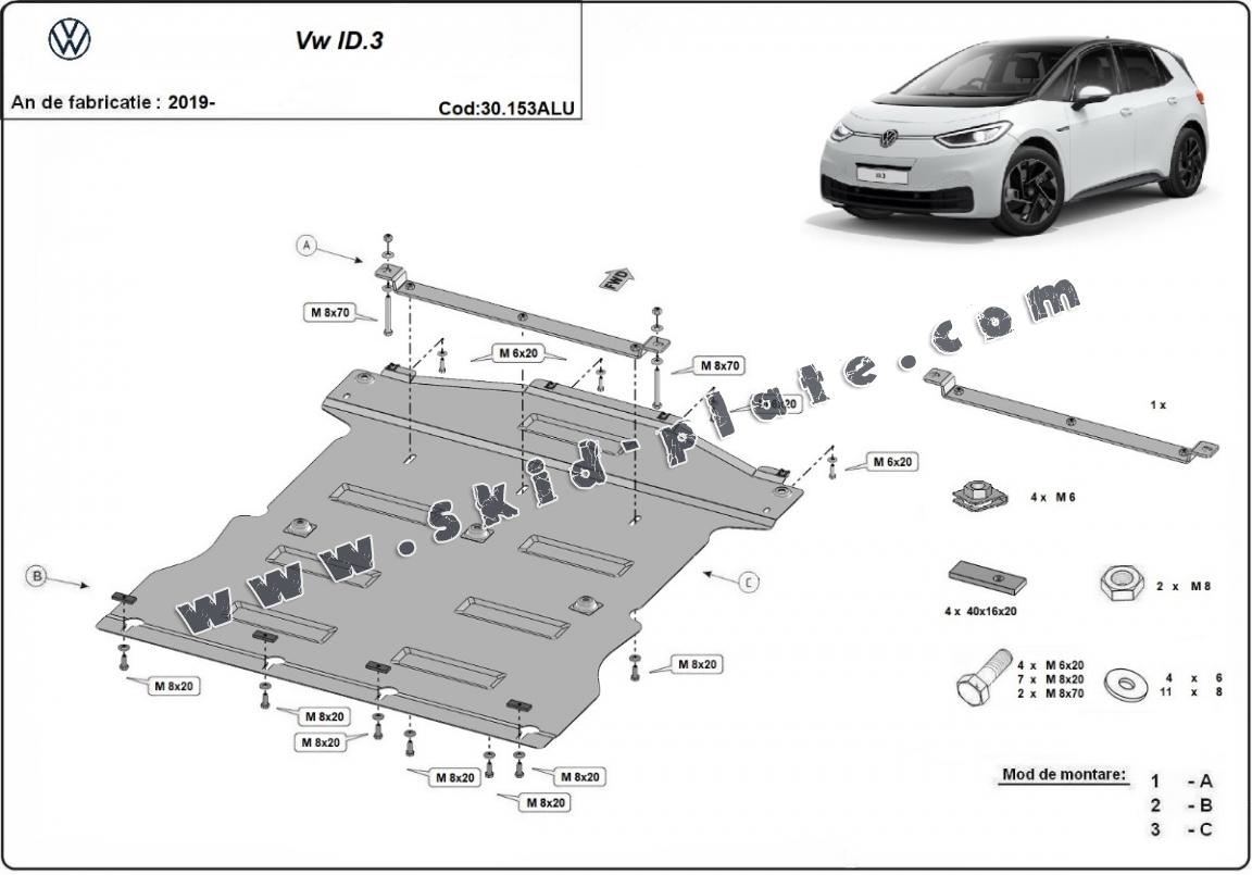 Aluminum skid plate for Volkswagen ID.3 (2019-2025)
