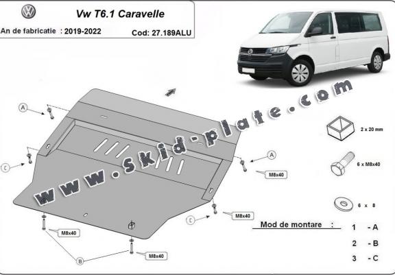Aluminum skid plate for Volkswagen Transporter T6.1 Caravelle (2019-2022)