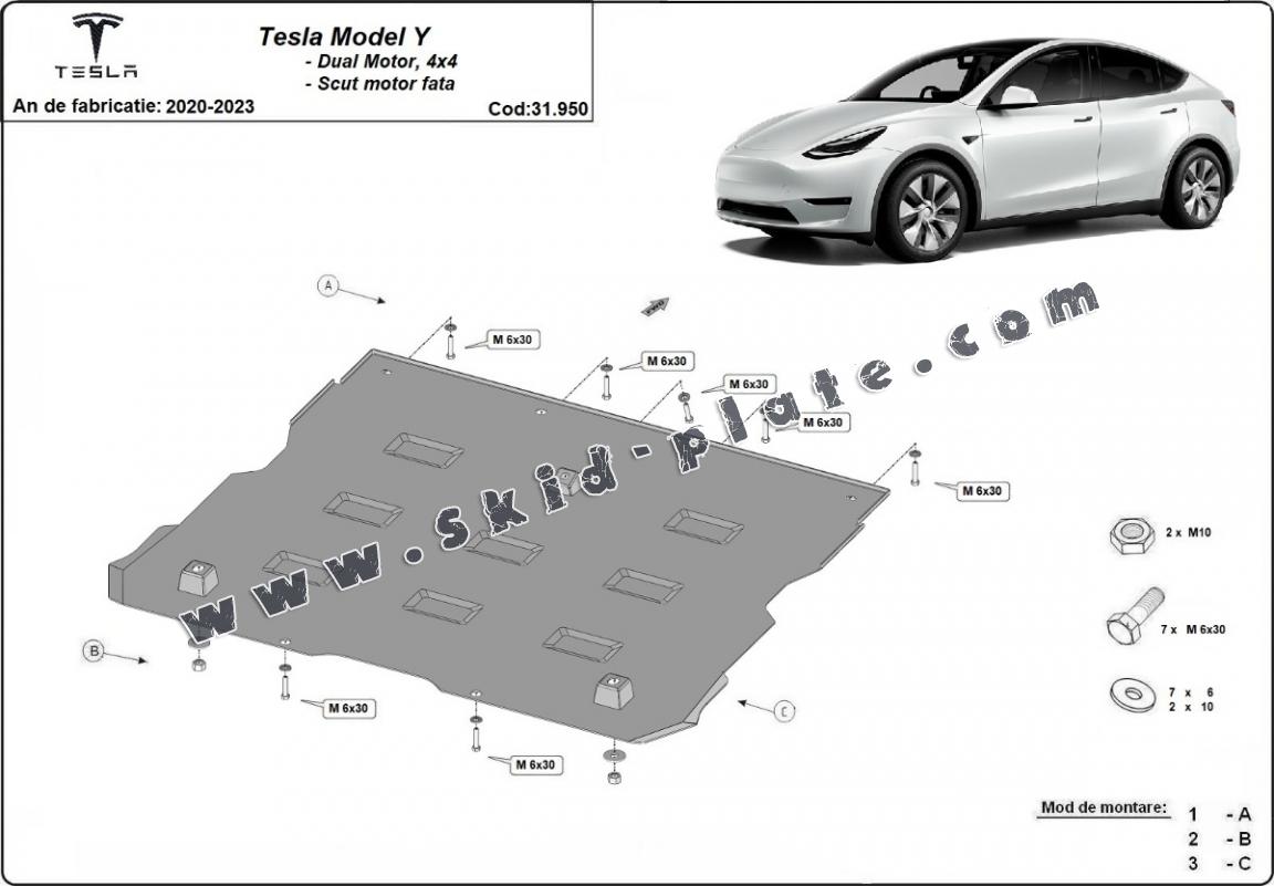 Front electric motor skid plate for Tesla Model Y AWD (2020-2023)