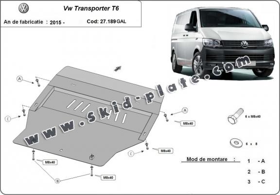 Galvanized steel skid plate for Volkswagen Transporter T6
