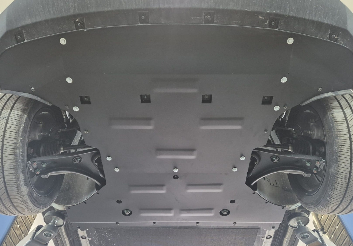 Skid plate for the protection of the: engine, front bumper, gearbox, radiator, Front differential The skid plate is new and fits perfectly for all versions of BYD Dolphin Surf manufactured between 2025 and 2026. Made out of 2 mm thick Steel plate. Screws, nuts, clips, all fastening accessories are included. All skid plates are powder coated to prevent corrosion. The exterior of the skid plate is provided with Steel reinforcements, which increases the resistance to impact. |