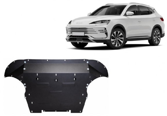 Skid plate for the protection of the: engine, gearbox, radiator, front bumper The skid plate is new and fits perfectly for all versions of BYD Seal U manufactured between 2024 and 2026. Made out of 2 mm thick Steel plate. Screws, nuts, clips, all fastening accessories are included. All skid plates are powder coated to prevent corrosion. The exterior of the skid plate is provided with Steel reinforcements, which increases the resistance to impact. |