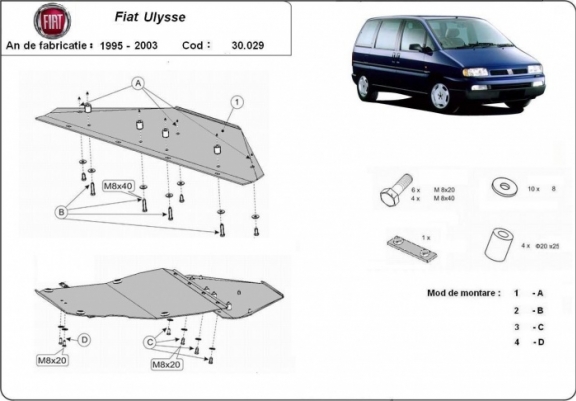 Steel skid plate for Fiat Ulysse (1995-2003)