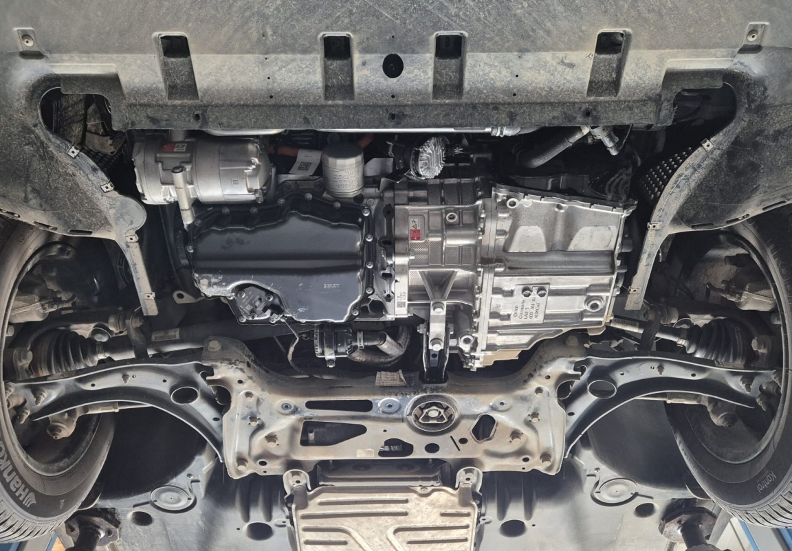 Skid plate for the protection of the: engine, gearbox, radiator The skid plate is new and fits perfectly for the Skoda Kodiaq, with the following engine/drive versions: hybrid - manufactured between 2024 and 2026. It has an opening for the oil sump, so it's removal won't be necessary to change the oil. Made out of 2 mm thick Steel plate. Screws, nuts, clips, all fastening accessories are included. All skid plates are powder coated to prevent corrosion. The exterior of the skid plate is provided with Steel reinforcements, which increases the resistance to impact. |