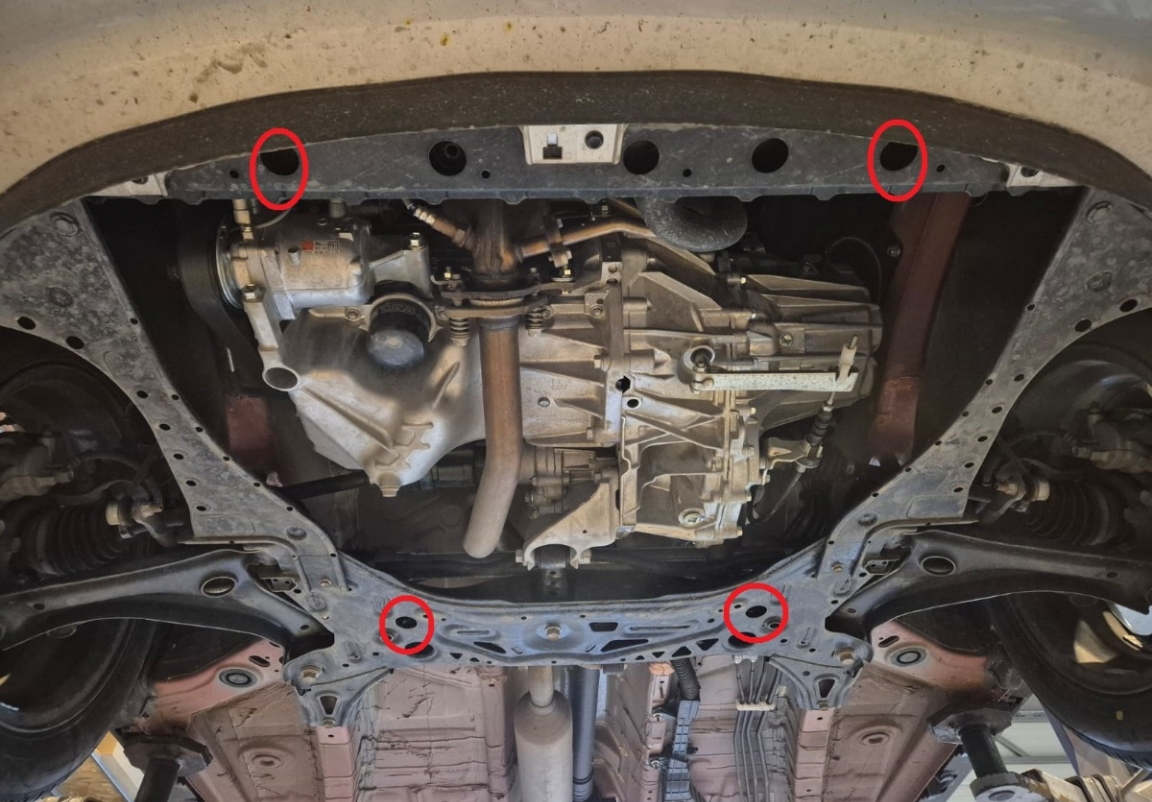 | Every car has factory-made screw holes for fitting the skid plate, making mounting very easy . You can either do it yourself or at any auto-service point. |