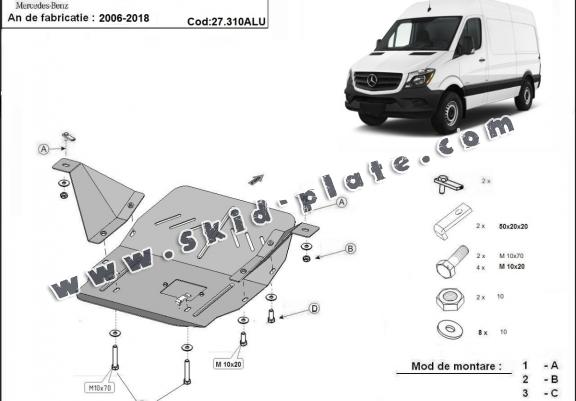 Aluminum skid plate for the protection of the engine and the gearbox for Mercedes Sprinter (2006-2018)