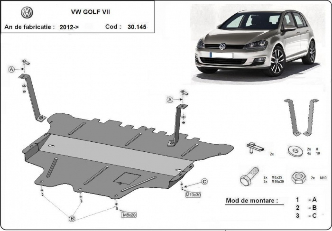Steel skid plate for the protection of the engine and the gearbox for VW Golf 7 - manual gearbox