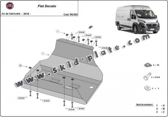 Steel fuel tank skid plate for Fiat Ducato (2018-2025)