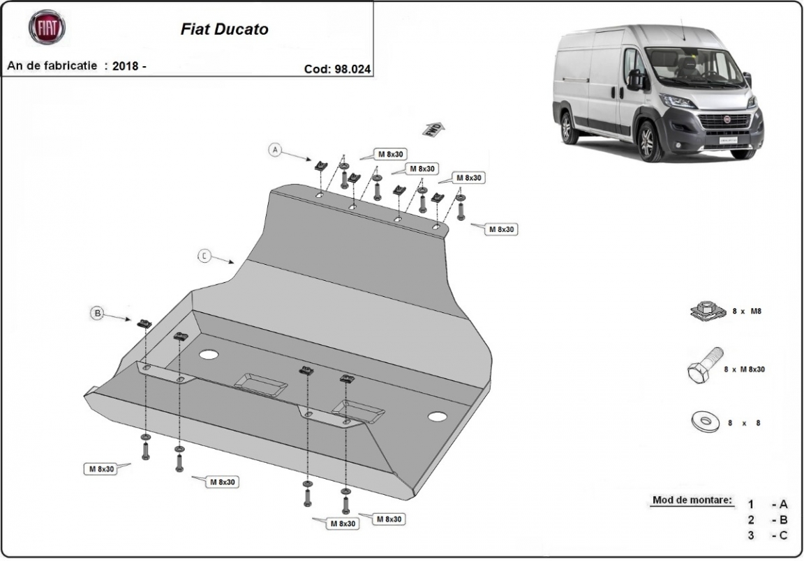 Skid plate for the protection of the: fuel tank The skid plate is new and fits perfectly for all versions of Fiat Ducato manufactured between 2018 and 2026. Made out of 2 mm thick Steel plate. Screws, nuts, clips, all fastening accessories are included. All skid plates are powder coated to prevent corrosion. The exterior of the skid plate is provided with Steel reinforcements, which increases the resistance to impact. |