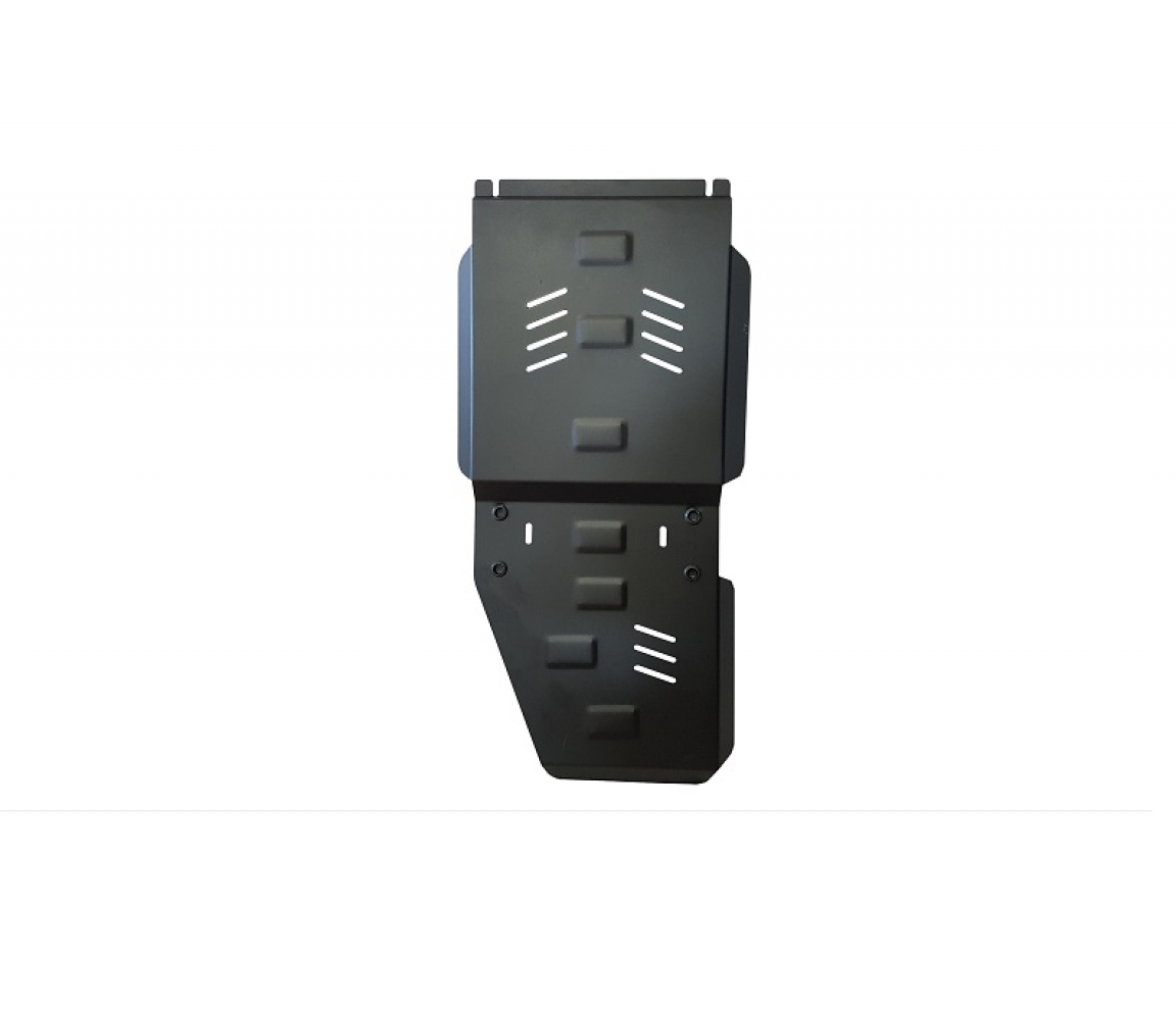 Skid plate for the protection of the: gearbox, transfer case The skid plate is new and fits perfectly for all versions of Mitsubishi L 200 manufactured between 2005 and 2015. Made out of 3 mm thick Steel plate. Screws, nuts, clips, all fastening accessories are included. All skid plates are powder coated to prevent corrosion. The exterior of the skid plate is provided with Steel reinforcements, which increases the resistance to impact. |