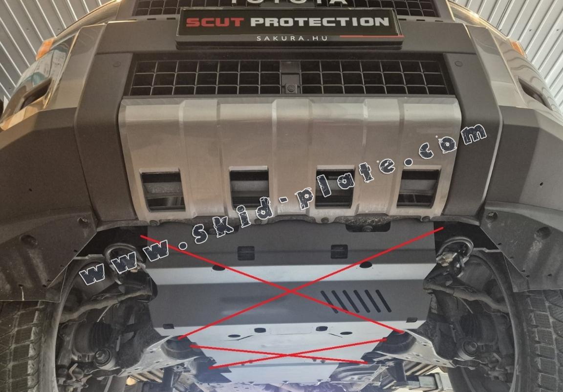Skid plate for the protection of the: gearbox, Transfer case The skid plate is new and fits perfectly for all versions of Toyota Land Cruiser 250 manufactured between 2024 and 2025. Made out of 3 mm thick Steel plate. Screws, nuts, clips, all fastening accessories are included. All skid plates are powder coated to prevent corrosion. The exterior of the skid plate is provided with Steel reinforcements, which increases the resistance to impact. |