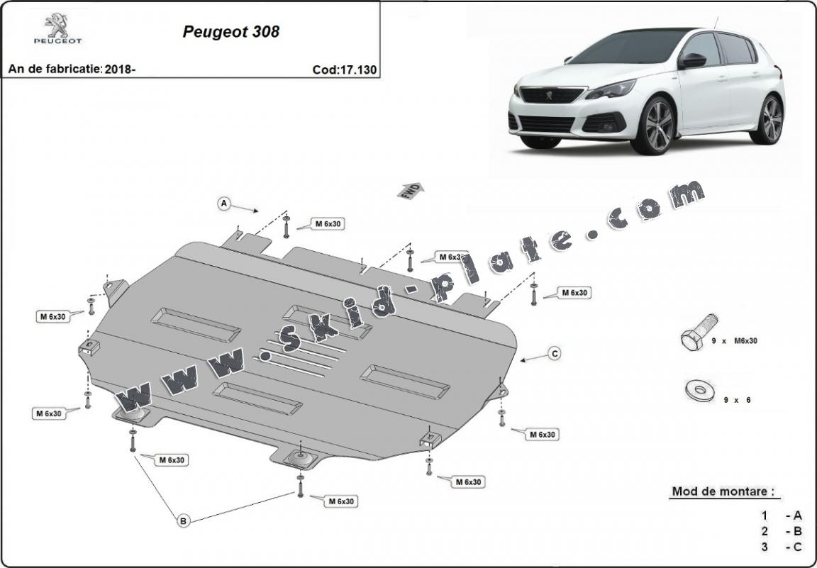 Steel skid plate for Peugeot 308 (2018-2025)