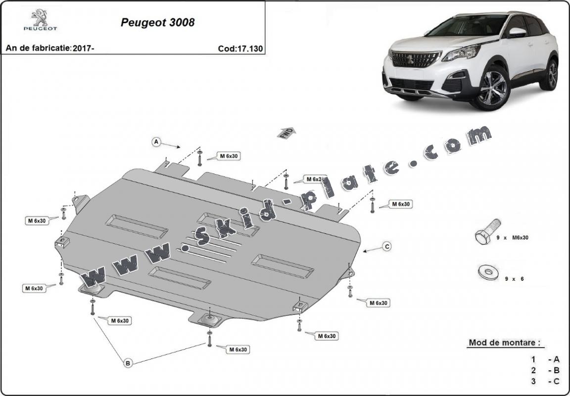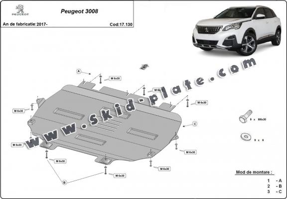 Steel skid plate for the protection of the engine and the gearbox for Peugeot 3008 (2017-2025)