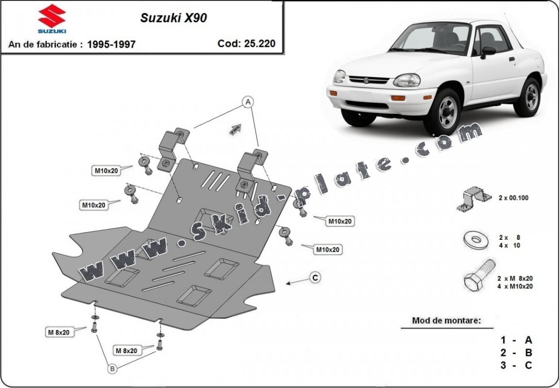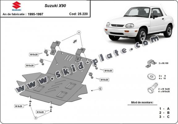 Skid plate for the protection of the: engine, radiator The skid plate is new and fits perfectly for all versions of Suzuki X90 manufactured between 1988 and 1999. Made out of 3 mm thick Steel plate. Screws, nuts, clips, all fastening accessories are included. All skid plates are powder coated to prevent corrosion. The exterior of the skid plate is provided with Steel reinforcements, which increases the resistance to impact. |
