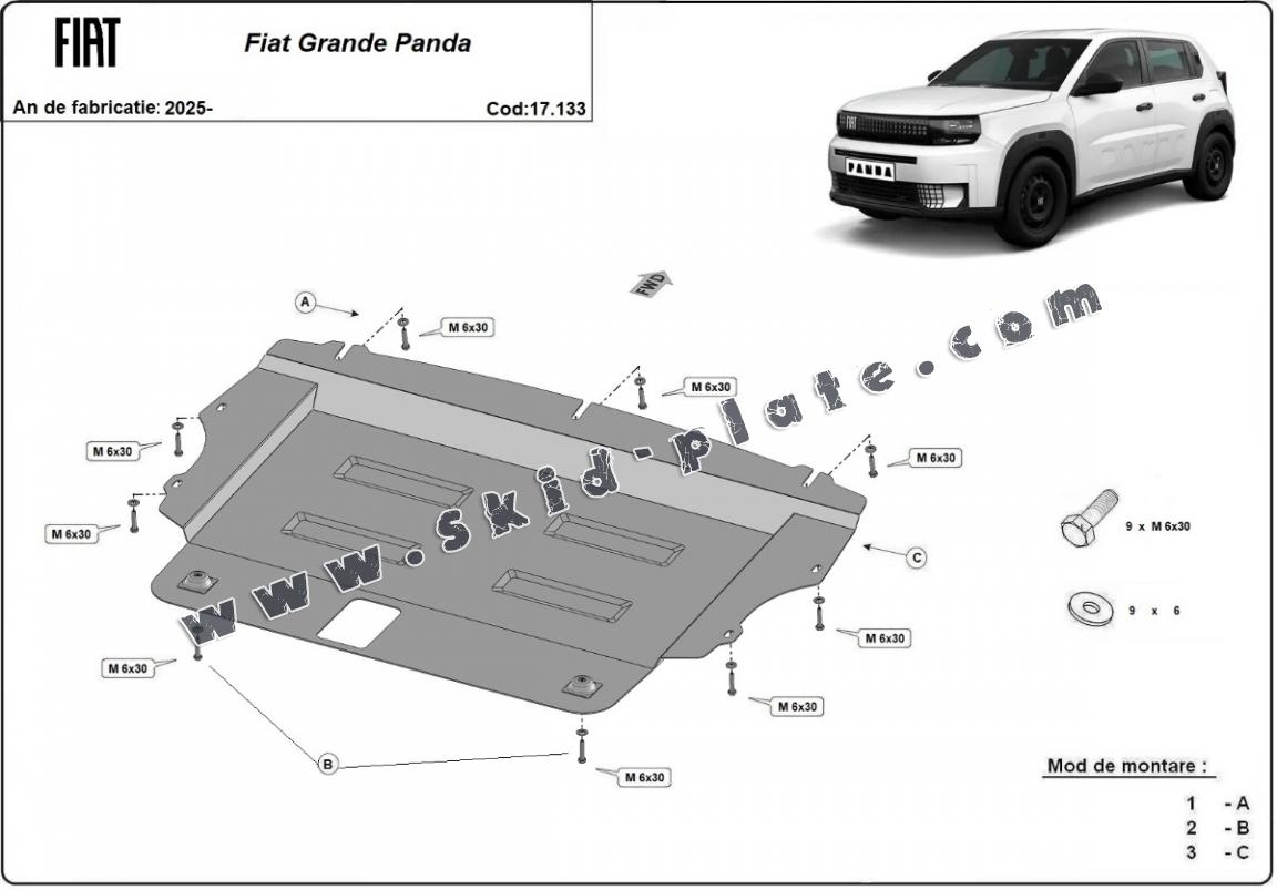 Steel skid plate for the protection of the engine and the gearbox for Fiat Grande Panda (2025-2025)