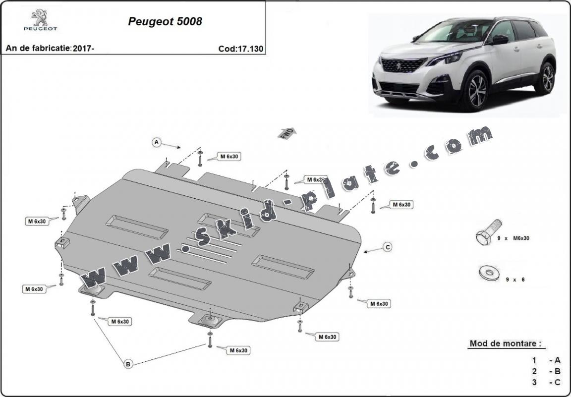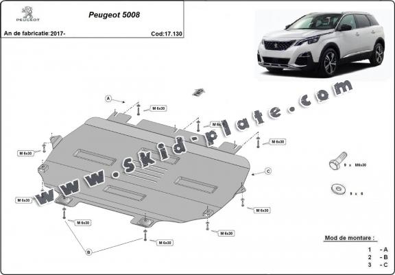 Steel skid plate for the protection of the engine and the gearbox for Peugeot 5008 (2017-2025)